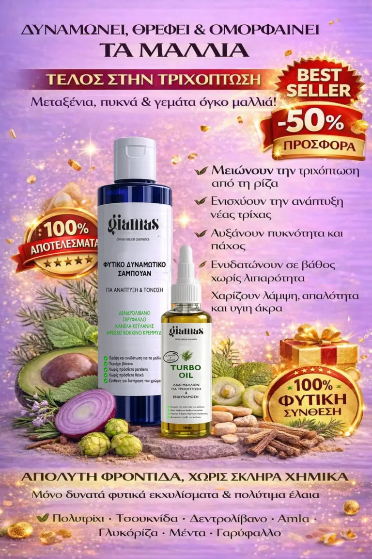 Σετ Κατά της Τριχόπτωσης – Φυτικό Δυναμωτικό Σαμπουάν & Turbo Oil